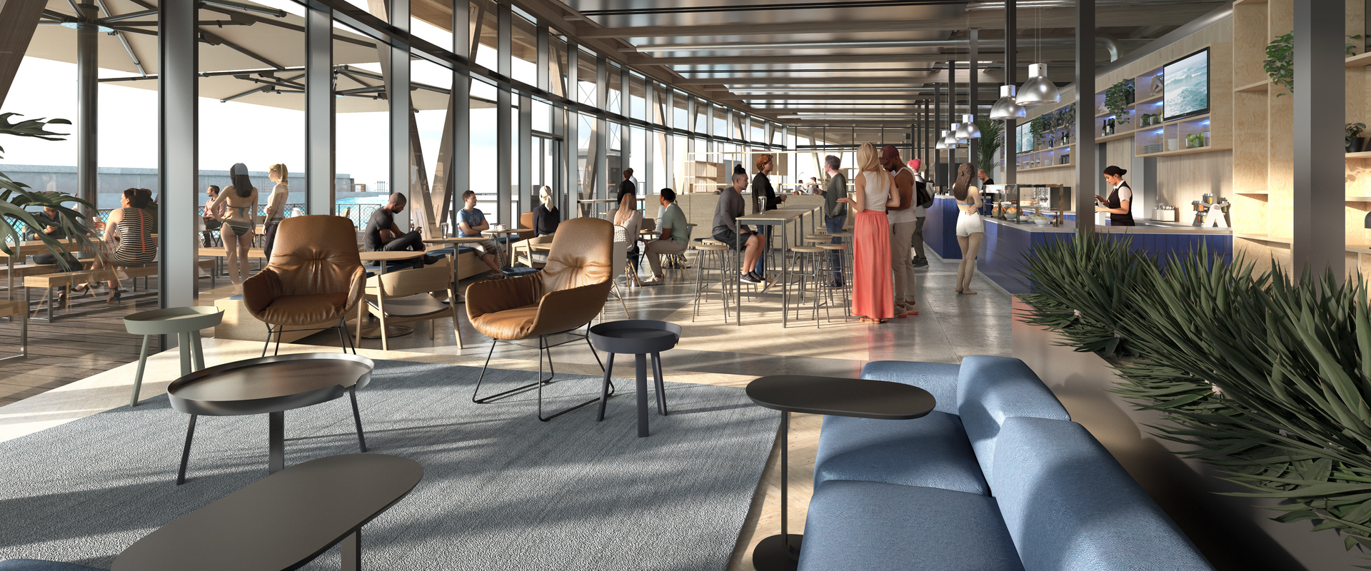 Das Essenskonzept mit einer international beeinflussten Küche umfasst Bowls und Burger. Von Morgens bis in den Abend hinein versorgt das Restaurant die Besucherinnen und Besucher mit Snacks, einer Barista-Kaffeebar und einer Mittagsverpflegung für die Beschäftigten der umliegenden Unternehmen. Als Mittelpunkt der „O2 SURFTOWN MUC“ wird das Restaurant über 100 Plätze im Inneren und rund 120 Sitzplätze auf der Terrasse verfügen, wo es auch eine Bar geben wird. Zusätzlich gibt es Event-Coodos, die als exklusiv Eventflächen gebucht werden können.