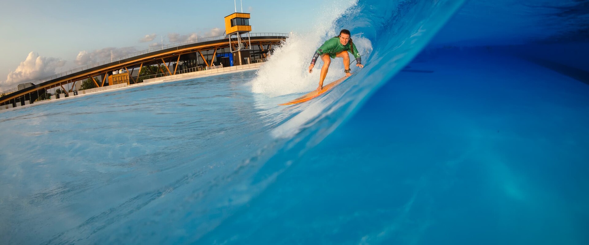 Im Pointbreak-Modus laufen die Wellen über die gesamte Länge des Pools am Wellengenerator entlang.