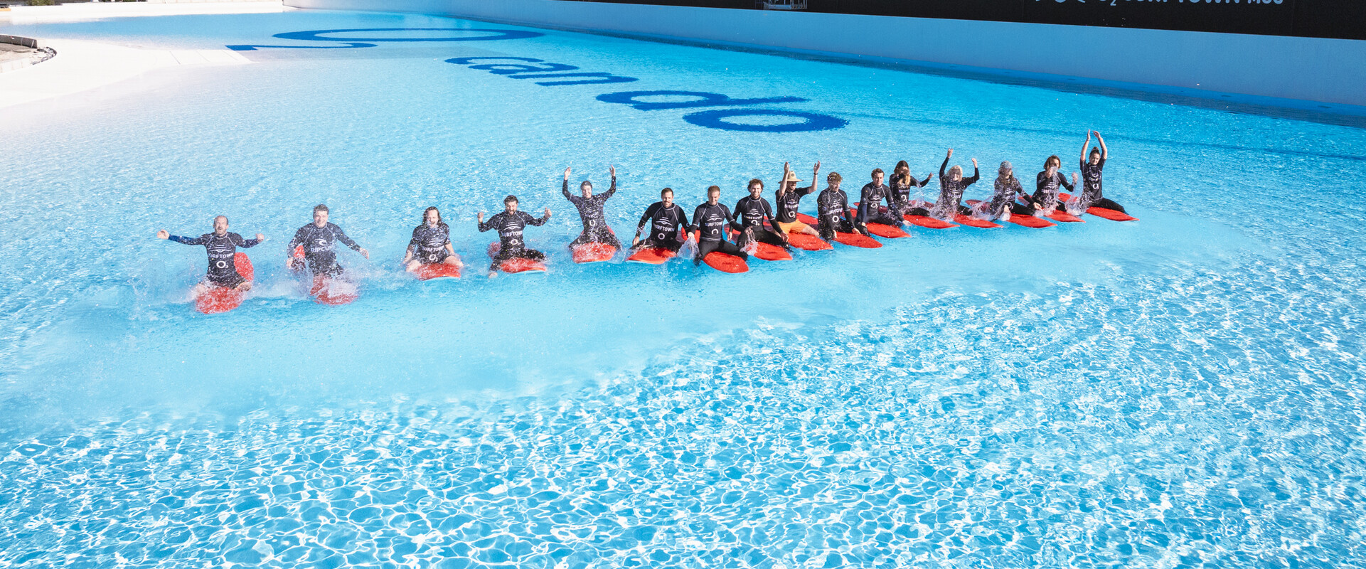 45 Min. Briefing, Theorie & Aktivierung; 60 Min. im Wavepool; 15 Min. De-Briefing