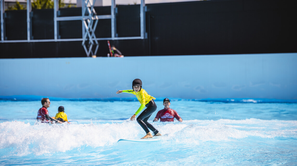 There will be a maximum of 14 surfers per Surfzone, depending on the mode you will get a minimum of 10 or 12 waves. Just like in the ocean, you will surf your wave and paddle back into the lineup afterwards. Our surf coaches and lifeguards make sure that there is a non-competitive and good vibe on the water so everyone will have a great surf experience. Like this we can guarantee a fair amount of wave attempts per session for every surfer.